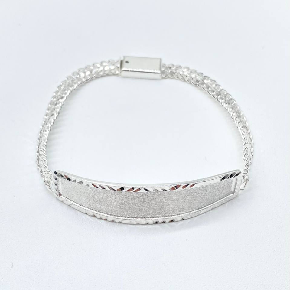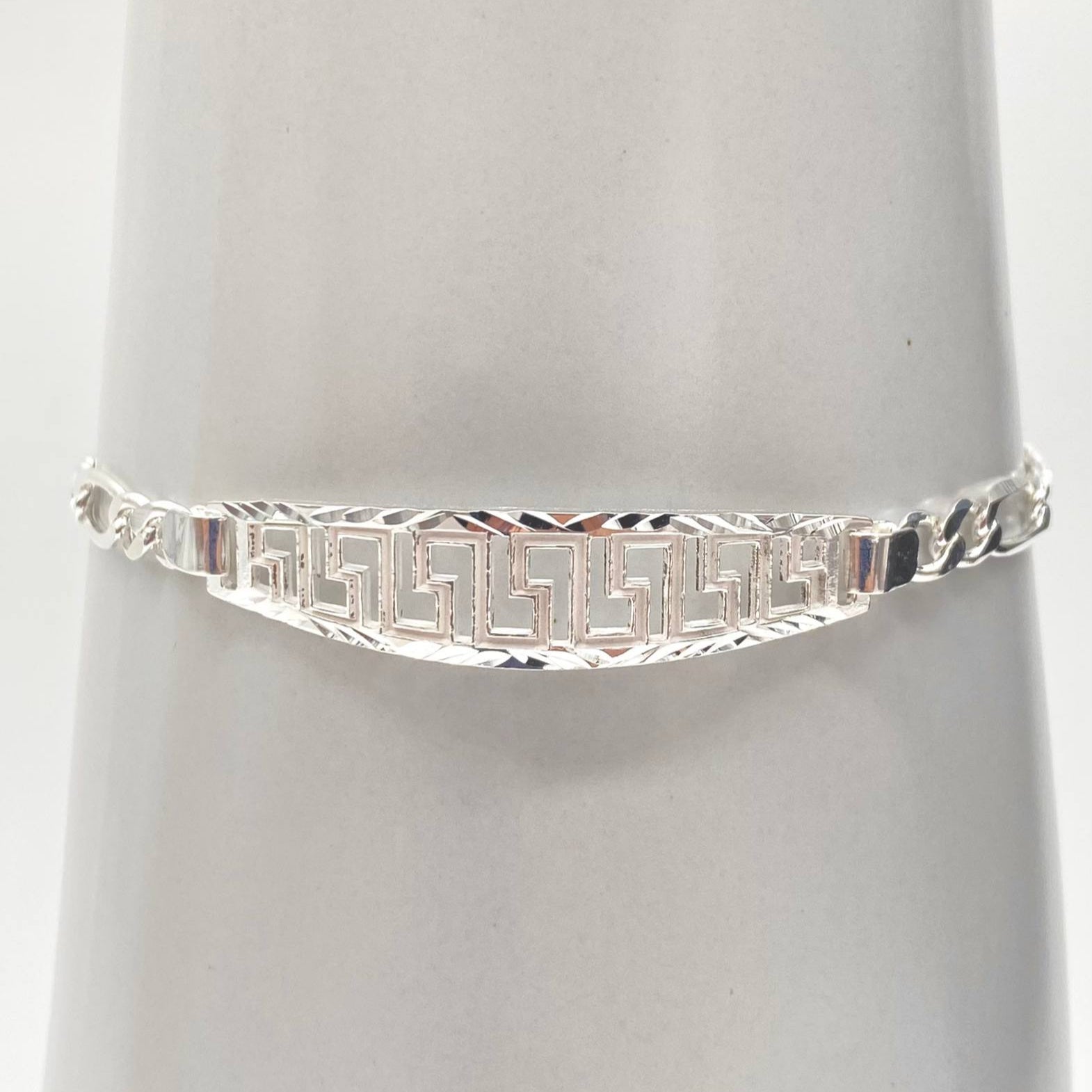 Esclava cartier con placa en forma de grecas, broche de perico, plata 925 mx.