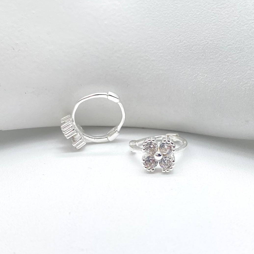 Huggie con figura de flor mini, en plata 925 mexicana.