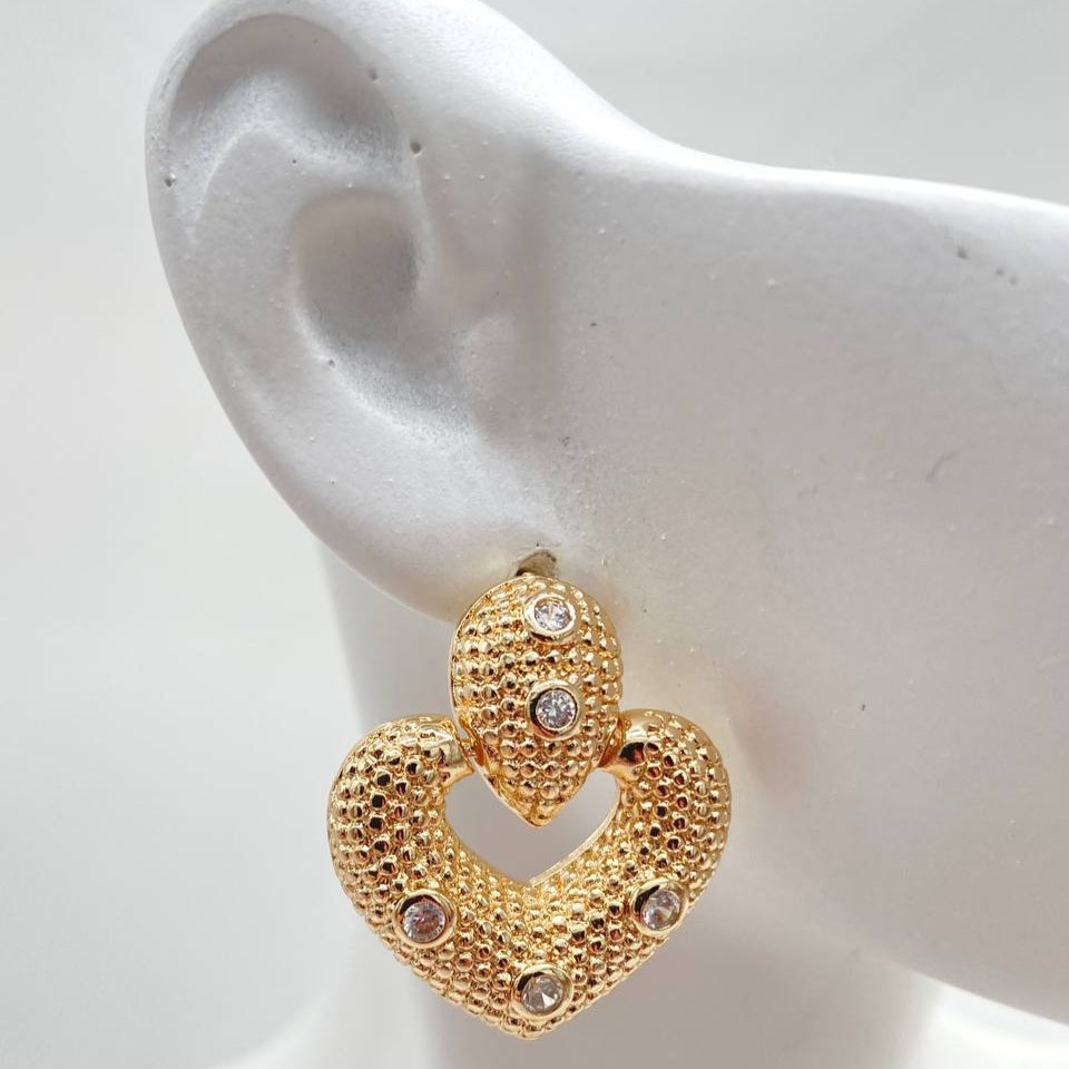 ARETE EN CHAPA DE ORO 18K EN FORMA DE CORAZON COLGANTE CON ZIRCONIA. MEDIDAS: 2 CM ANCHO 2.5 LARGO