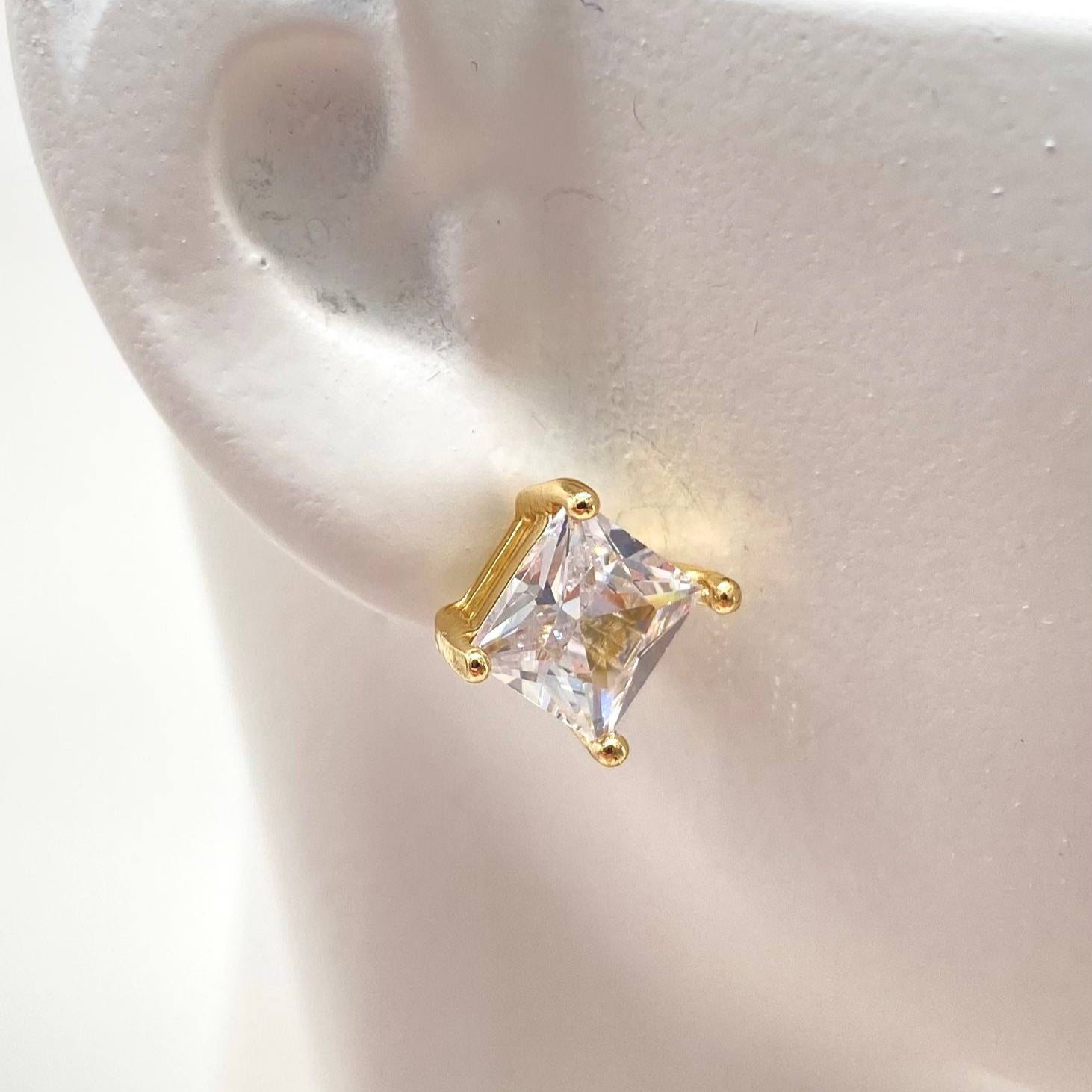 Broquel chapa de oro 18k, en forma de cuadro.