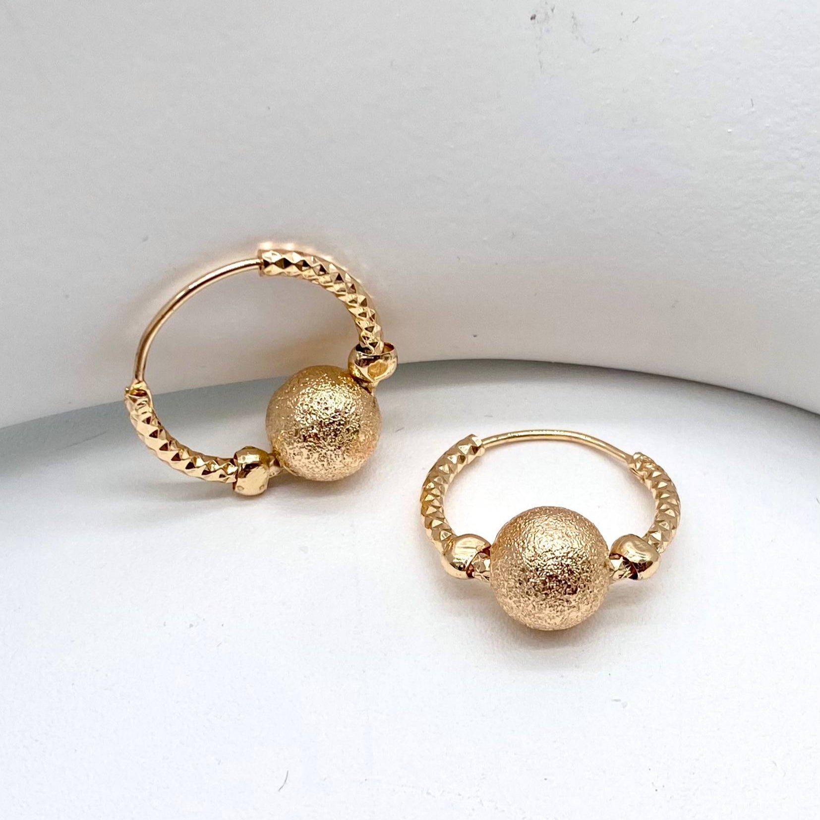 Arracada mini diamantada de 2cm en chapa de oro 18k