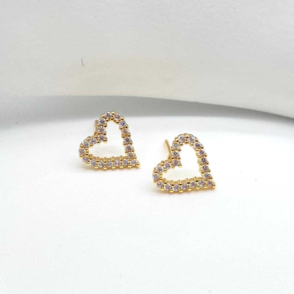 Broquel en chapa de oro 18k, color dorado en forma de corazón con circonias alrededor.