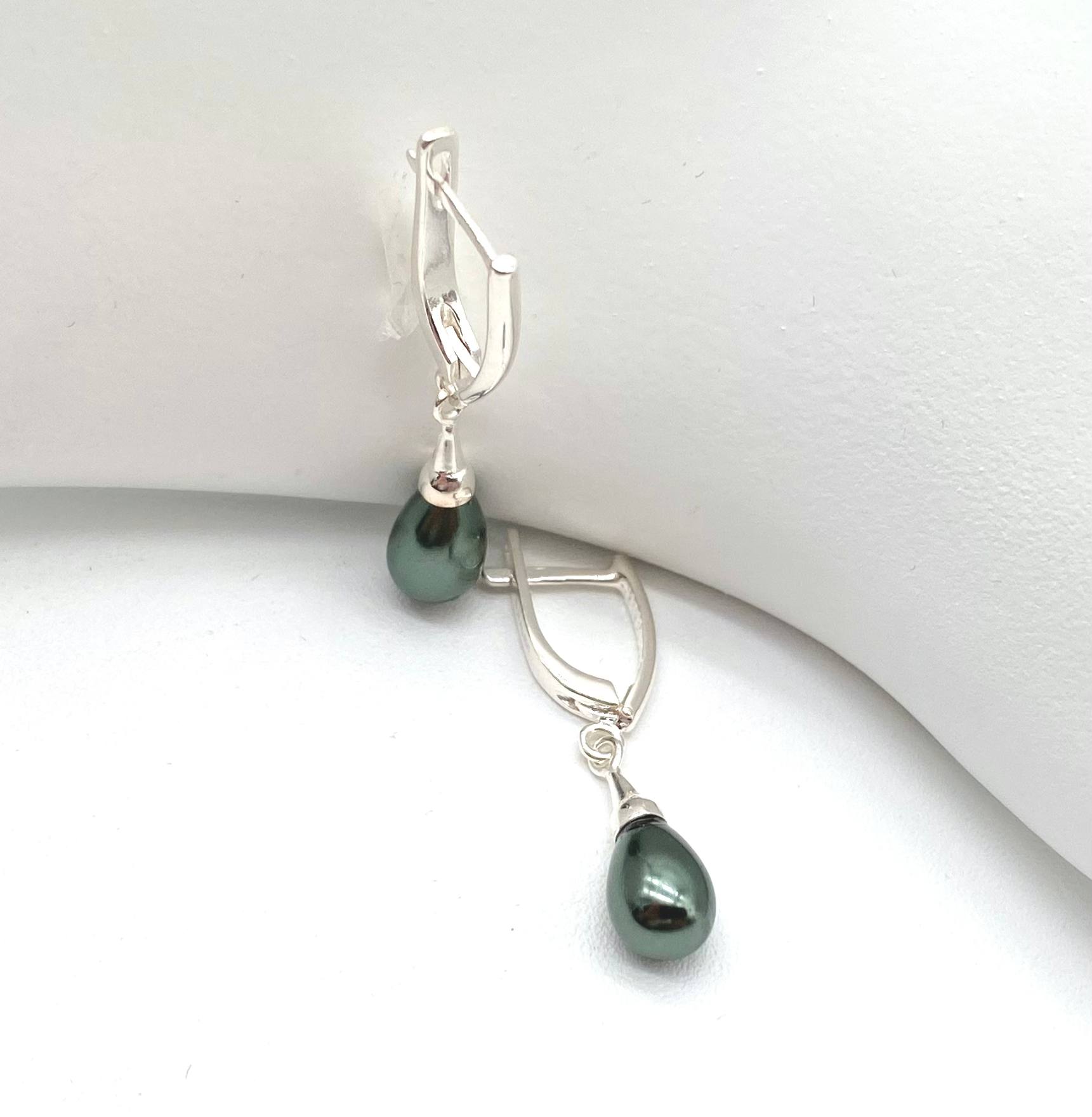 Huggie con colgante de forma de perla color verde militar, en plata 925 italiana.