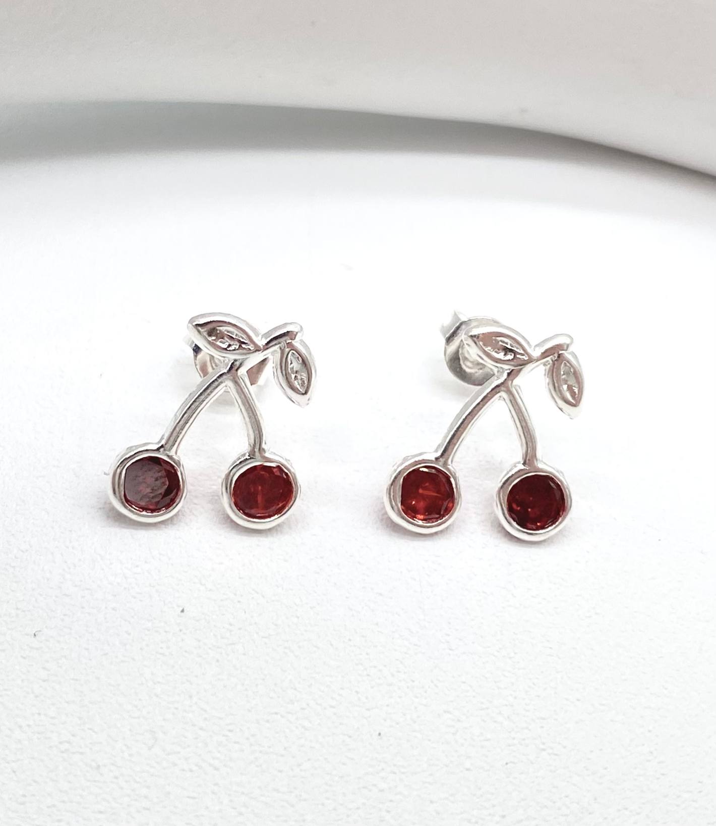 Broquel plata 925, con figura de cerezas, broche de mariposa.
