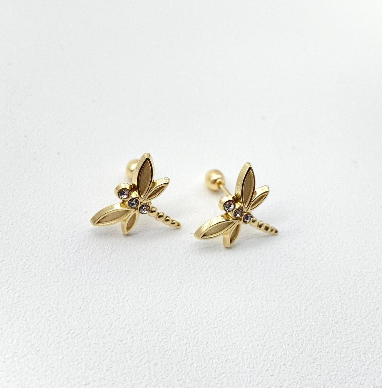 Broquel en oro 10k (GARANTIZADO), figura Libélula.