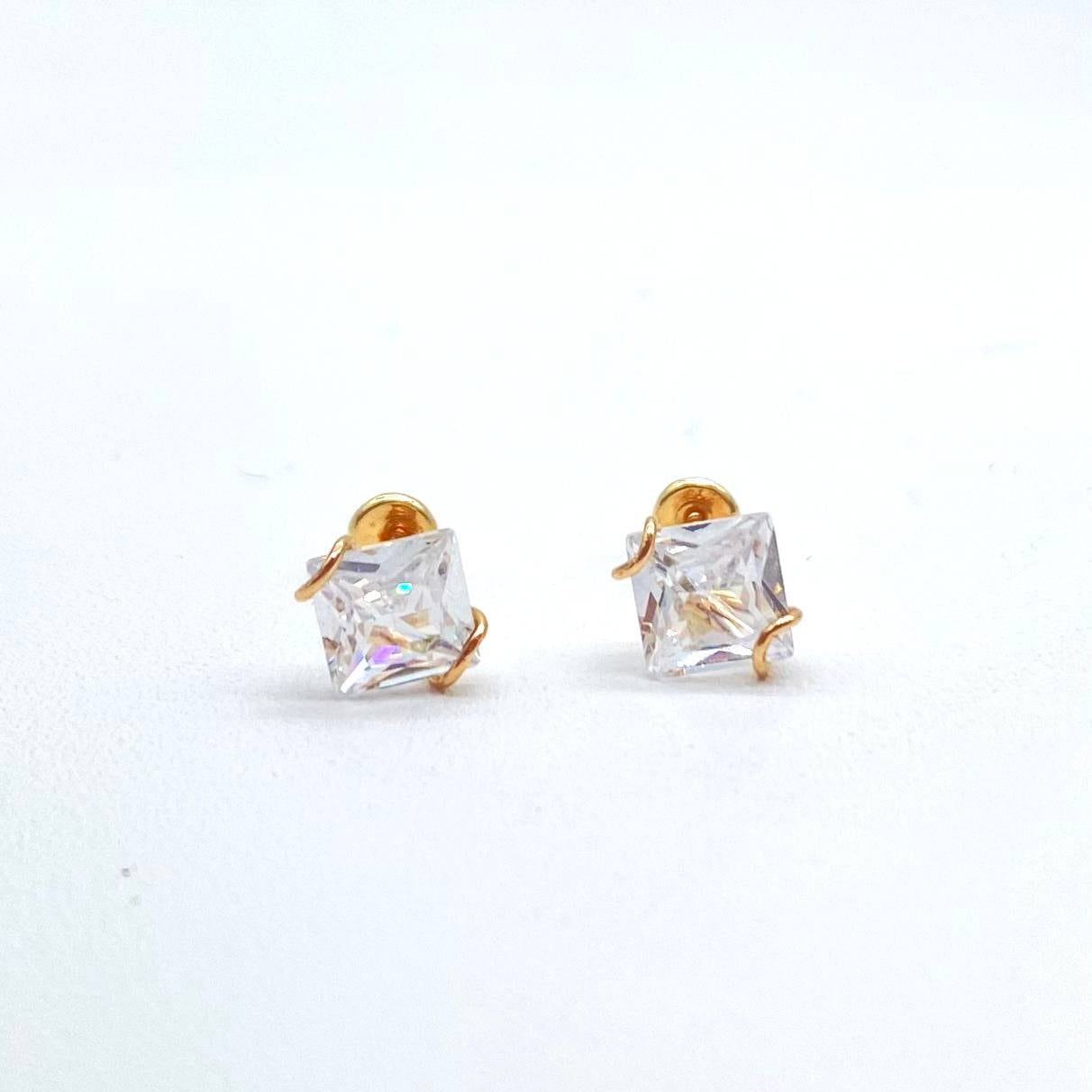 Broquel en oro 10k (GARANTIZADO), recto con cuadro 5x5 con aro.