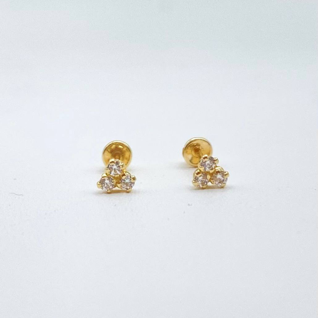 Broquel de oro 10k, con figura tres circulos en zirconias.
