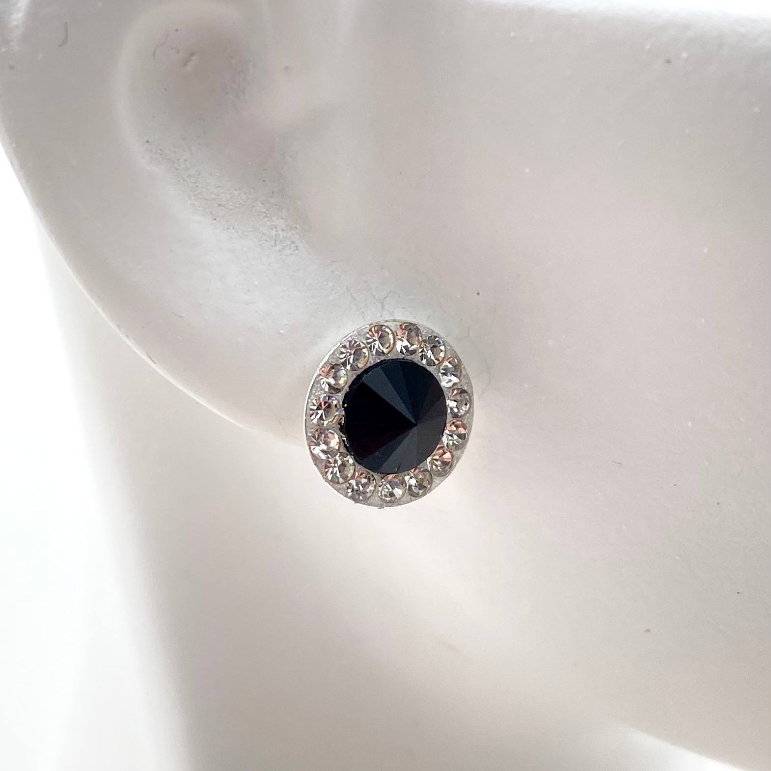 Broquel en plata 925, platillo con piedra negra, con zirconias en pasta.
