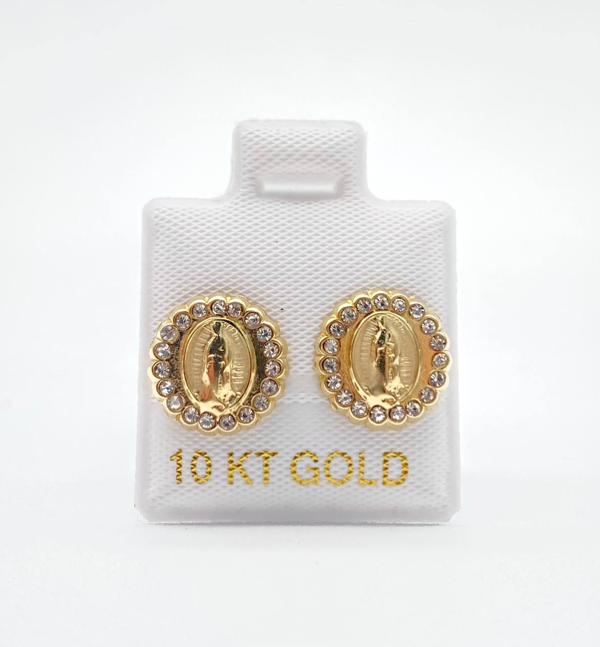 Broquel en oro 10k (GARANTIZADO), Virgen con zirconias.