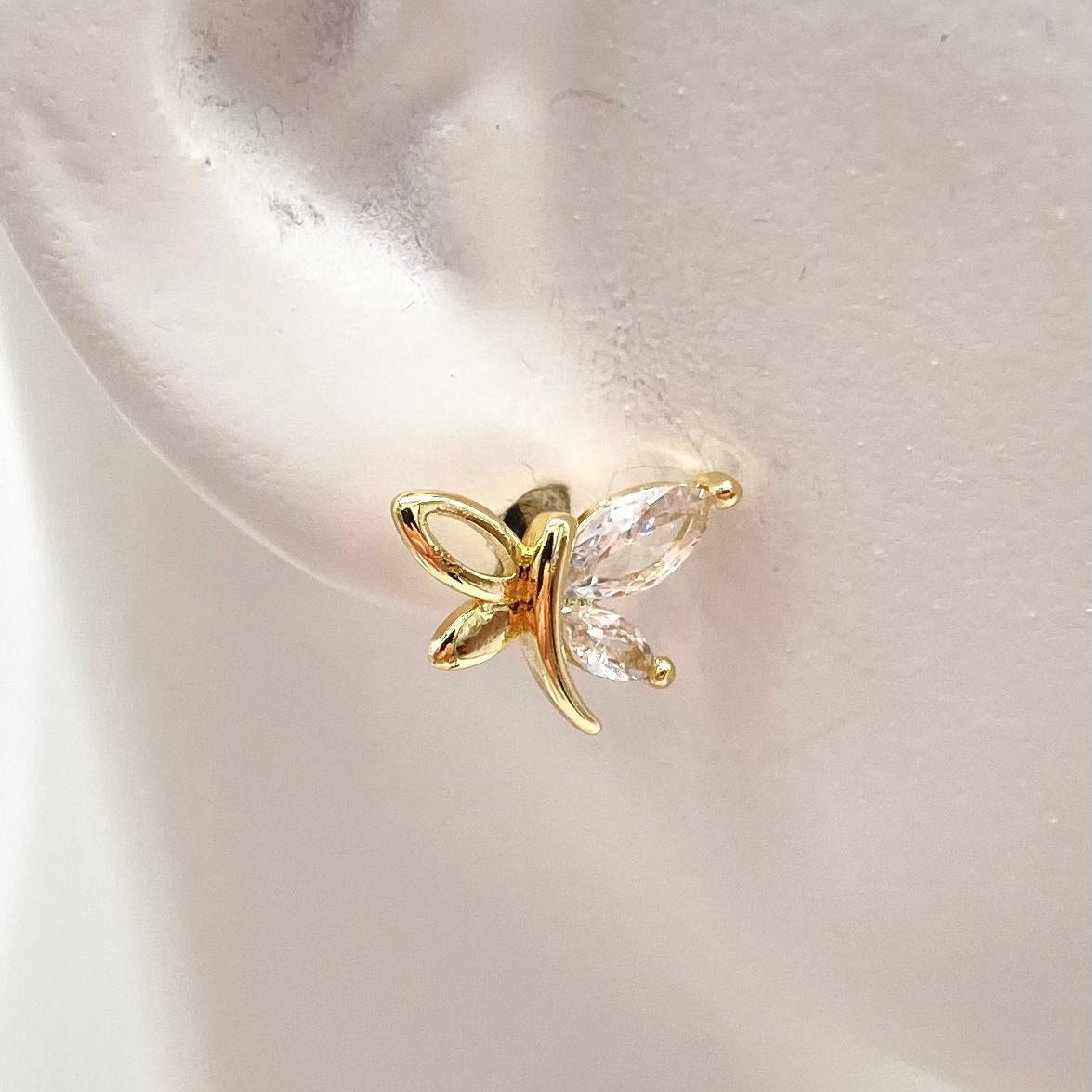 Broquel chapa de oro 18k, con figura de libelula.