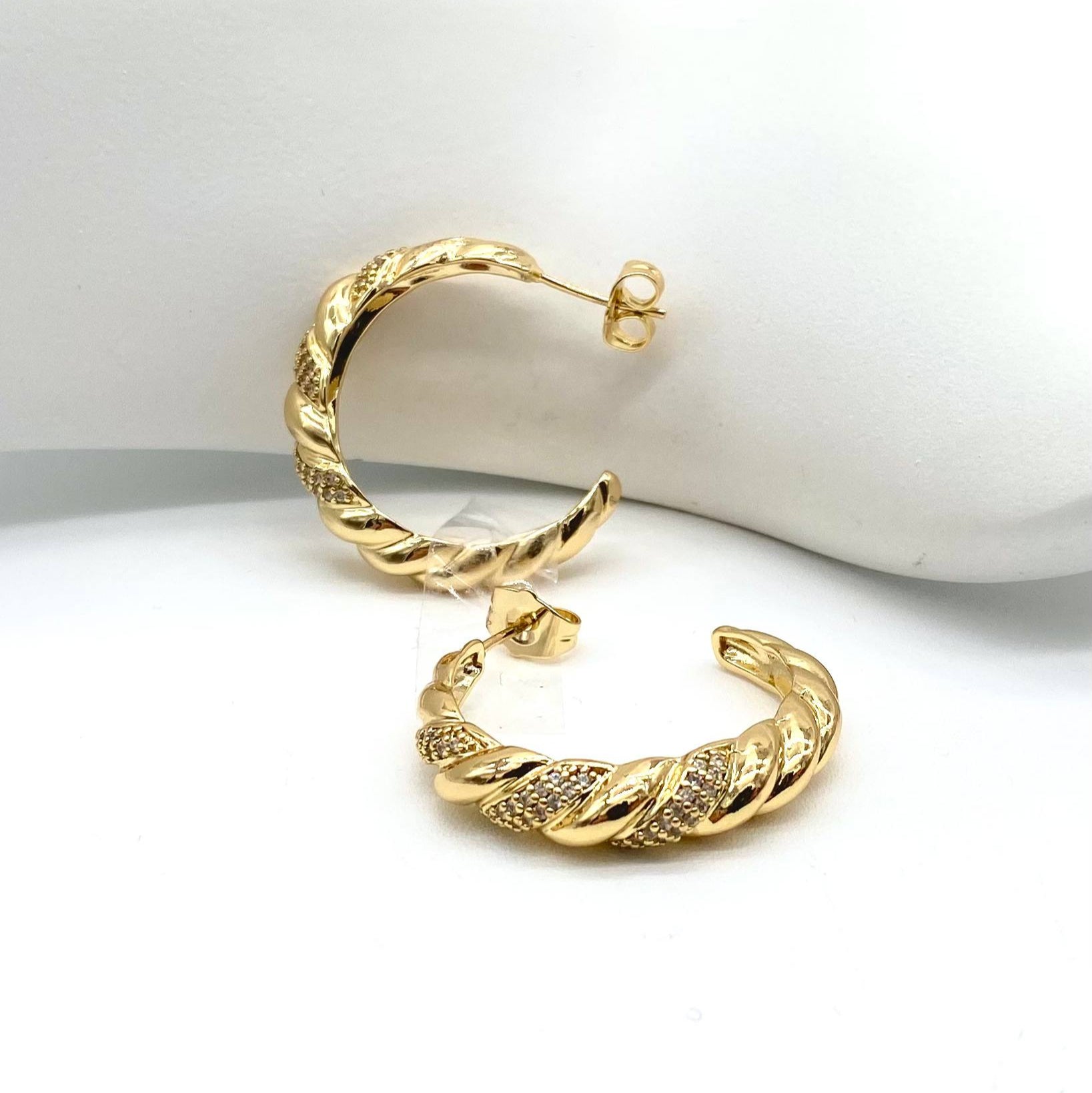 ARRACADA MEDIA TRENZADA CHAPA DE ORO 18K