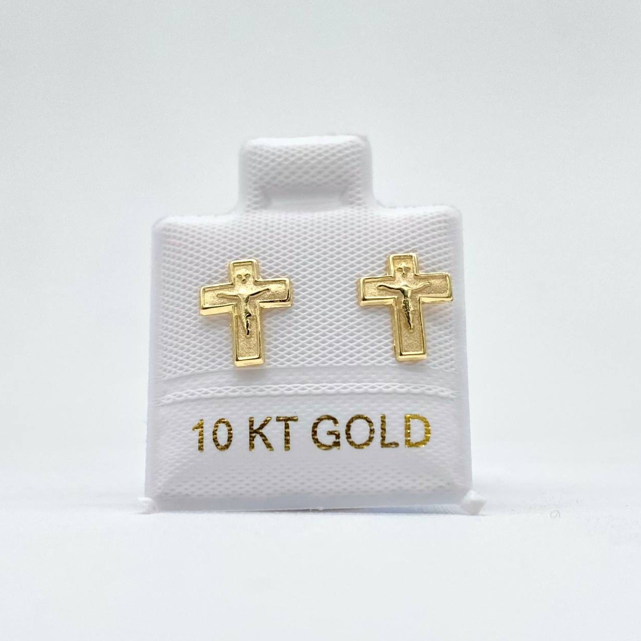 Broquel de oro 10K, (GARANTIZADO) con figura de cruz con cristo.
