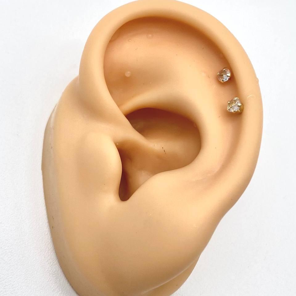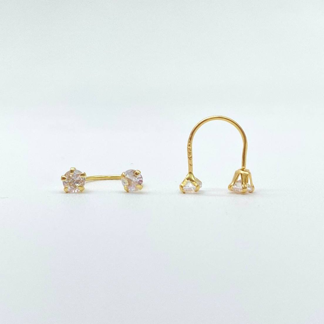 Broquel en oro 10k (GARANTIZADO), curvo con zirconias de 3x3.