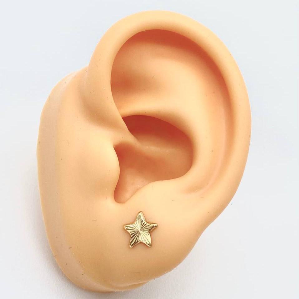 Broquel en oro 10k (GARANTIZADO), figura estrella diamantada.