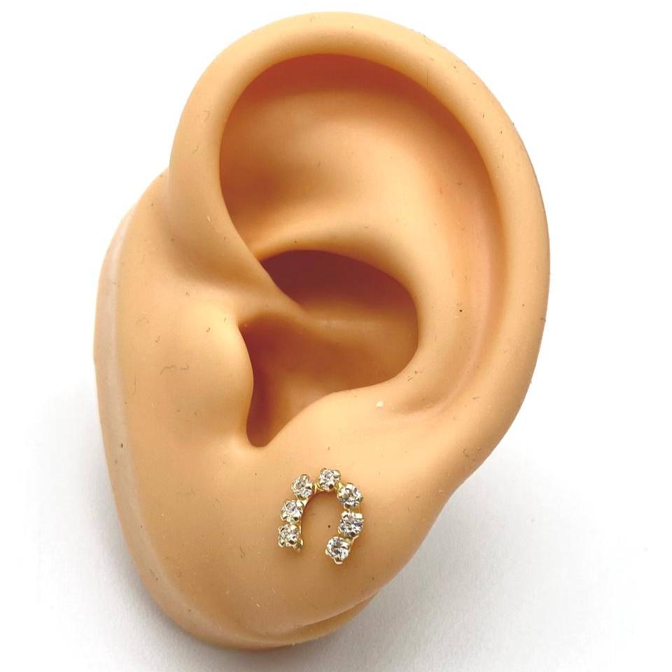 Broquel en oro 10k (GARANTIZADO), figura herradura con zirconia.