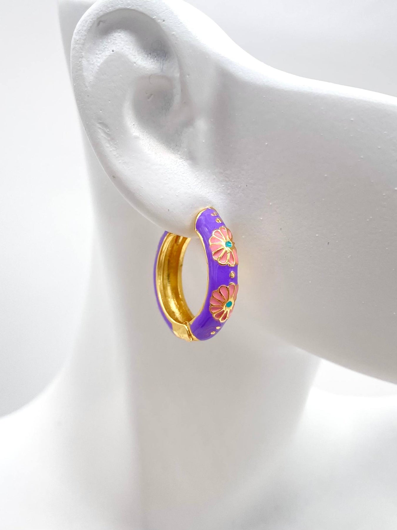Huggie en chapa de oro 18k, esmaltado en color morado