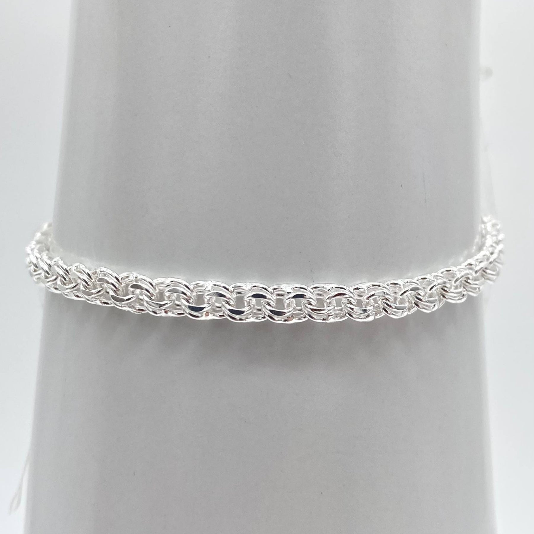Pulso tejido chino, con broche de perico en plata 925 mexicana.